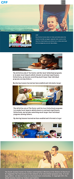 DESCRIBE THE COMPANY’S BRAND, PERSONALITY, AND CULTURE We are a faith-based organization based in Columbia that seeks to help fathers find their way in the world. We are welcoming and open to people who may have not made the best decisions in their past. We want troubled fathers to feel at home and that we can be trusted to help them rebuild their lives. We believe that Christ is the way to a better life, but we understand that others may not share exactly our faith. We want to help even the most wayward souls find happiness. Low income dads have common challenges, and many of them are unable to pay child support because they lack an education, job or transportation. For some the challenges are growing. With unemployment rates at 9.6 percent, many low-income fathers remain unemployed and unable to pay child support. Failure to pay child support often results in incarceration for non- custodial parents; however, statistics indicate that 43 percent of fathers jailed solely for non- payment of child support will return to jail once released creating a costly cycle. The inmate population continues to exceed capacities in county detention centers. About 10,000 inmates are released annually and close to 40 percent of them will be re-incarcerated within 36 months. We feel that this vicious cycle can be halted with the right leadership and help. We want to be there for these fathers and their families. WHAT ASPECTS OF THE COMPANIES CURRENT SITE WORK WELL? The site is easy to read and looks very nice on a phone. We like that. We also like whats in the navigation. Providing links directly to all of our services has been really helpful. Also, the colors are very nice, though we have been thinking that the red should be replaced with something less threatening. What do you think? We love the homepage and have gotten many compliments on it, but no one seems to click on the news links. WHAT ASPECTS OF THE COMPANIES CURRENT SITE ARE UNSUCCESSFUL? 1. The subpages are kind of ‘busy’. They are a little confusing because so much is going on. Fathers are having a hard time finding resources. Maybe the design could be simplified a little so that its easier to find stuff? 2. No one ever watches the testimony videos. 3. Sometimes fathers confuse the two search bars. The ‘find a program’ bar and the ‘google search bar’ look a lot alike but they do different things. We need the search bar because fathers use it all the time, but maybe you could do something so that they aren’t confused. 4. Online donations have decreased since the site was launched last year. I don’t know why, but maybe the donate button is hard to find. Donations are up and down all year, but maybe there’s something that you can do.